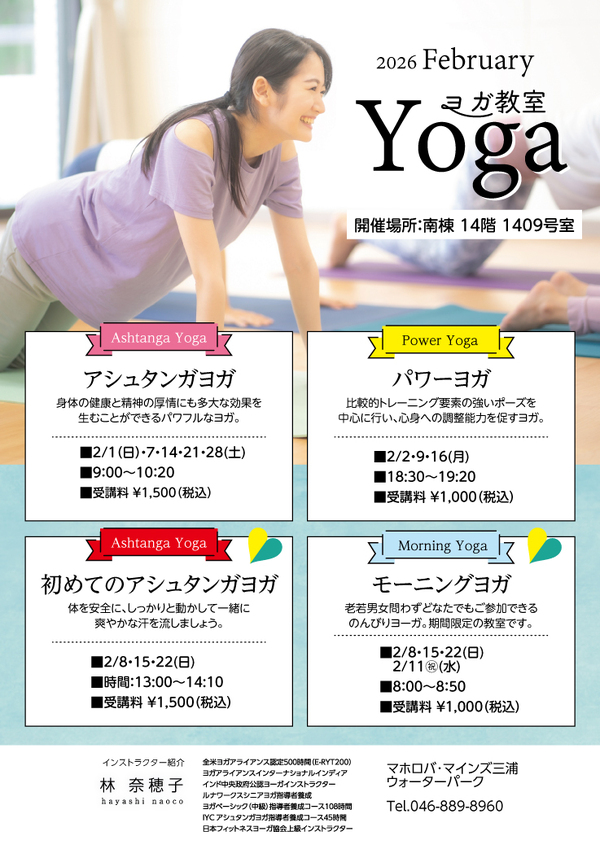| 備考 | 開催日の5日前までにお申し込みください。 046-889-8960(ウェルネスクラブ) ※日程は変更になる場合があります。 |