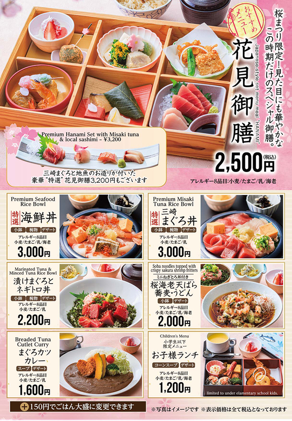 桜まつりランチフェア開催!早咲きの三浦海岸河津桜のおまつりに合わせて、この時期だけのスペシャルメニューをご用意してお待ちしております。