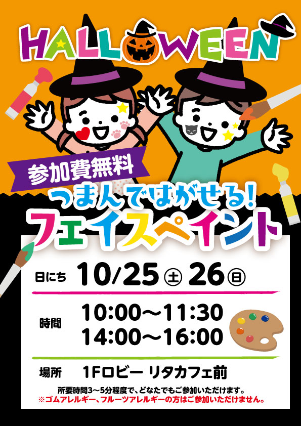 簡単にはがせるフェイスペイントだから、お気軽に体験していただけます。