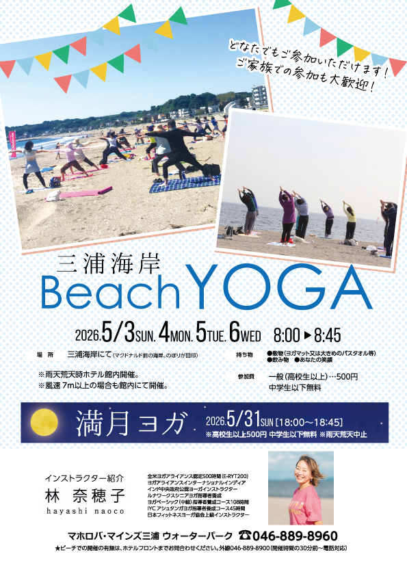 | 時間 | ビーチヨガ チラシをご参照ください |